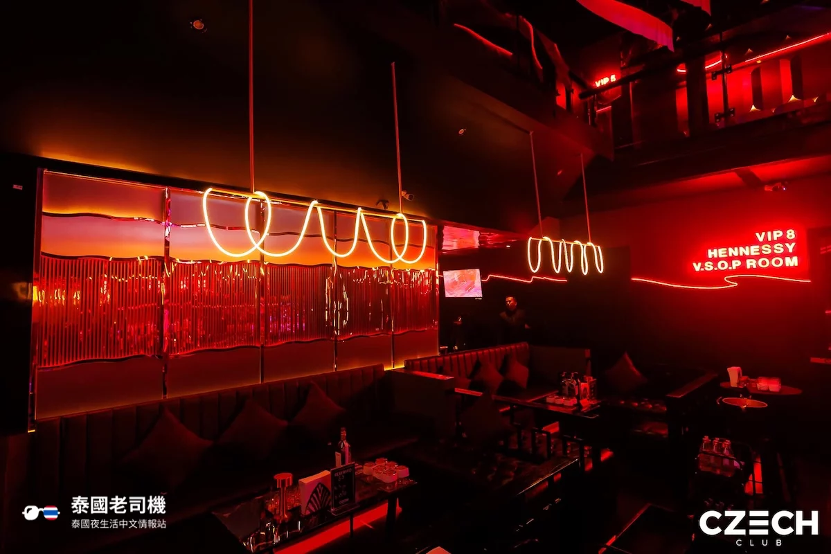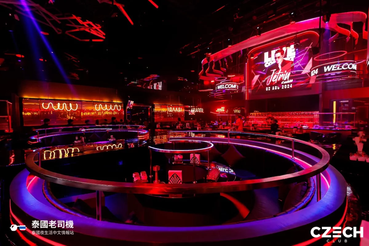 Czech Club 位於曼谷 Ekkamai 區,是一家相對實惠的高端紳士俱樂部/夜總會,於 2012 年開業,疫情期間經歷大規模翻新,轉型為更時尚的夜生活場所。其獨特特色包括現場樂隊表演、DJ 表演及每周邀請知名泰國歌手藝人、樂團組合等登台,結合先進音響及大型 LED 螢幕,營造出動感十足的娛樂空間。整體氛圍活潑熱鬧,吸引本地和外國客人,適合商務聚會或休閒的團體派對,員工英語流利,提供代客泊車服務。