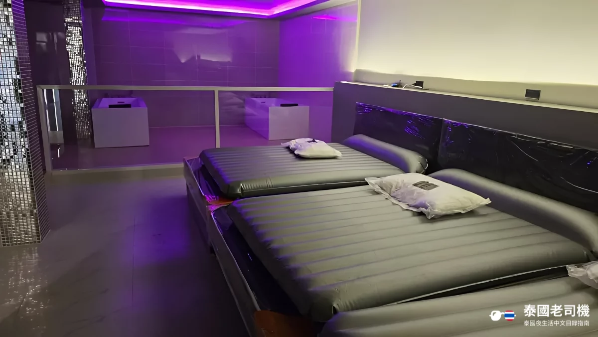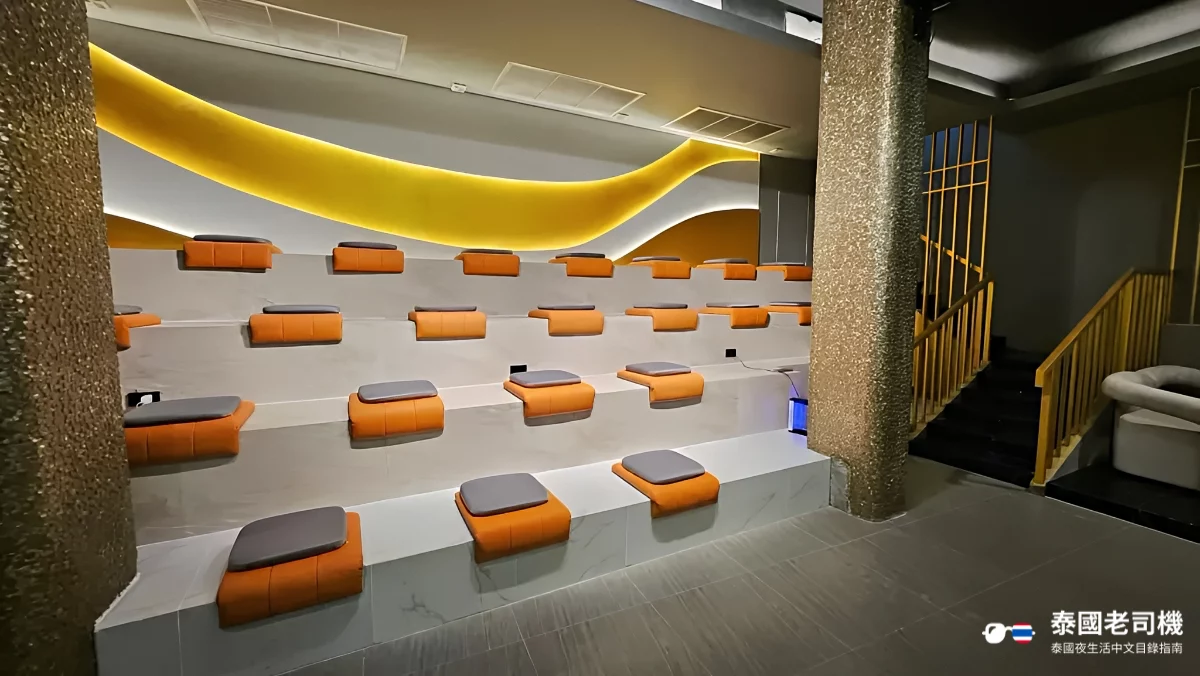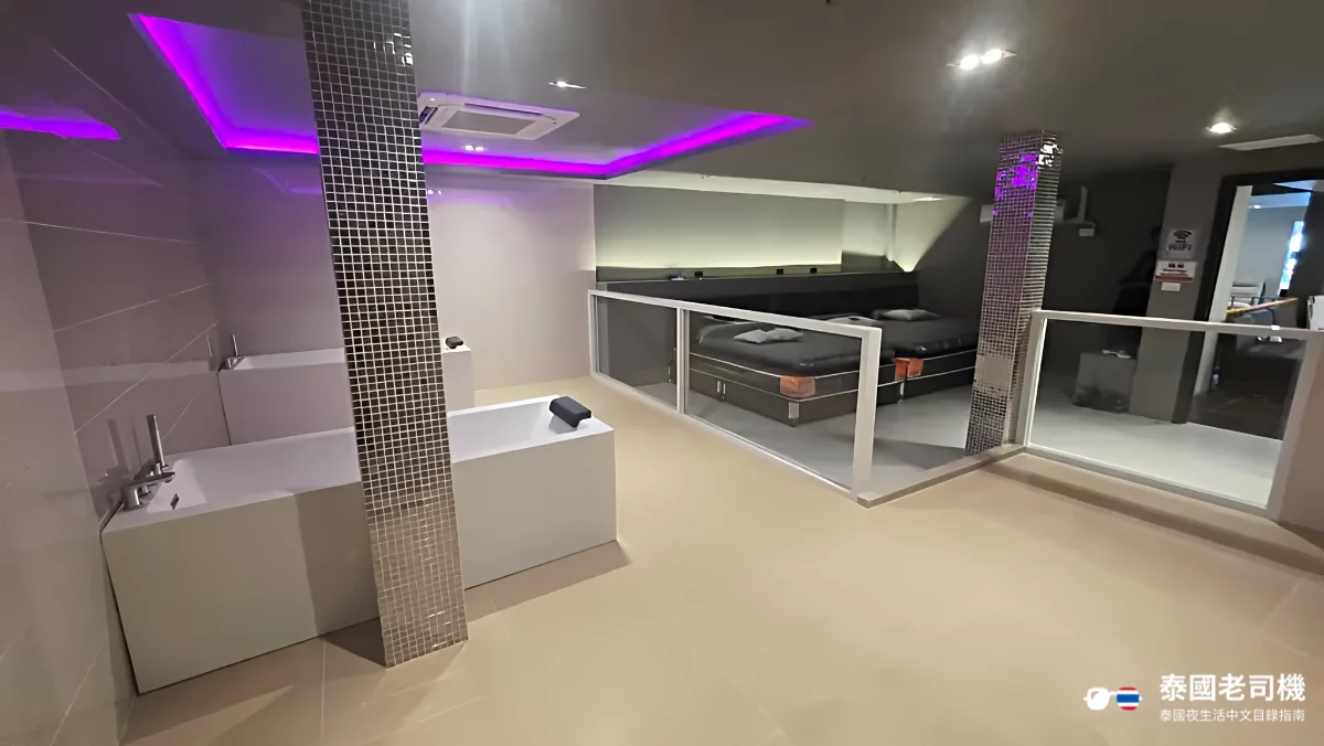 Dragon Lady Massage 的規模頗大,燈黃色的外牆加上燈光來看相當顯眼,遠遠就能看到店鋪名稱。裡面的大廳也很寬敞,有大量的座位,燈光和用色非常明亮,整體裝潢設計時尚簡約。店裡共有 16 個房間,除了淋浴房和按摩浴缸房外,最特別的是可供多人同時使用的房間 (2 或 3 位客人),空間大到有點空曠,可與朋友結伴一同享受服務。