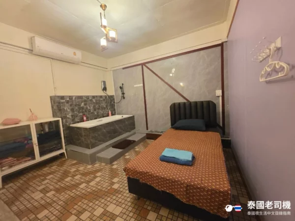 Elle Massage 除了替換了招牌外,未見對內部格局和裝潢進行翻新,不過從照片來看,整體還是偏老氣和老舊,看起來頗有年代感,特別是床鋪的風格讓人聯想起傳統的泰式按摩。店裡提供淋浴房和浴缸房兩種房型,雖然提供 Nuru 按摩服務,但未見有配備氣墊床,想體驗正宗 Nuru 按摩的兄弟可以跳過這家。