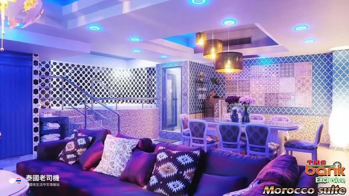 The Bank Massage Club 配備多元化的娛樂設施,包括卡拉 OK 室和撞球檯,為客人提供豐富的休閒選擇。場所內有約 20 – 30 位經過專業培訓的技師,提供優質的按摩服務,價格由 ฿3,000 – ฿8,900。房間環境整潔,並提供 VIP 套房選擇。