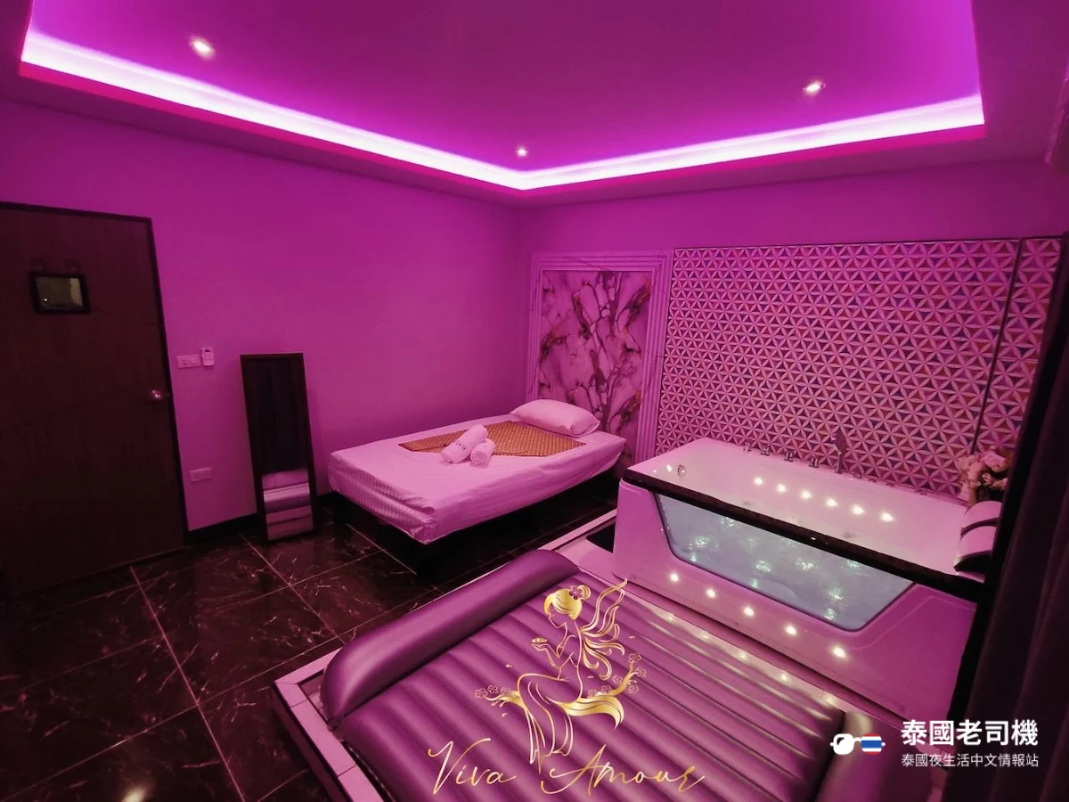 Viva Amour Massage 店內的裝潢風格老派,房間空間尚可。設有不同房型,包括淋浴房、按摩浴缸房和豪華房,部分房型會備有情趣椅和 Nuru 用的氣墊床。