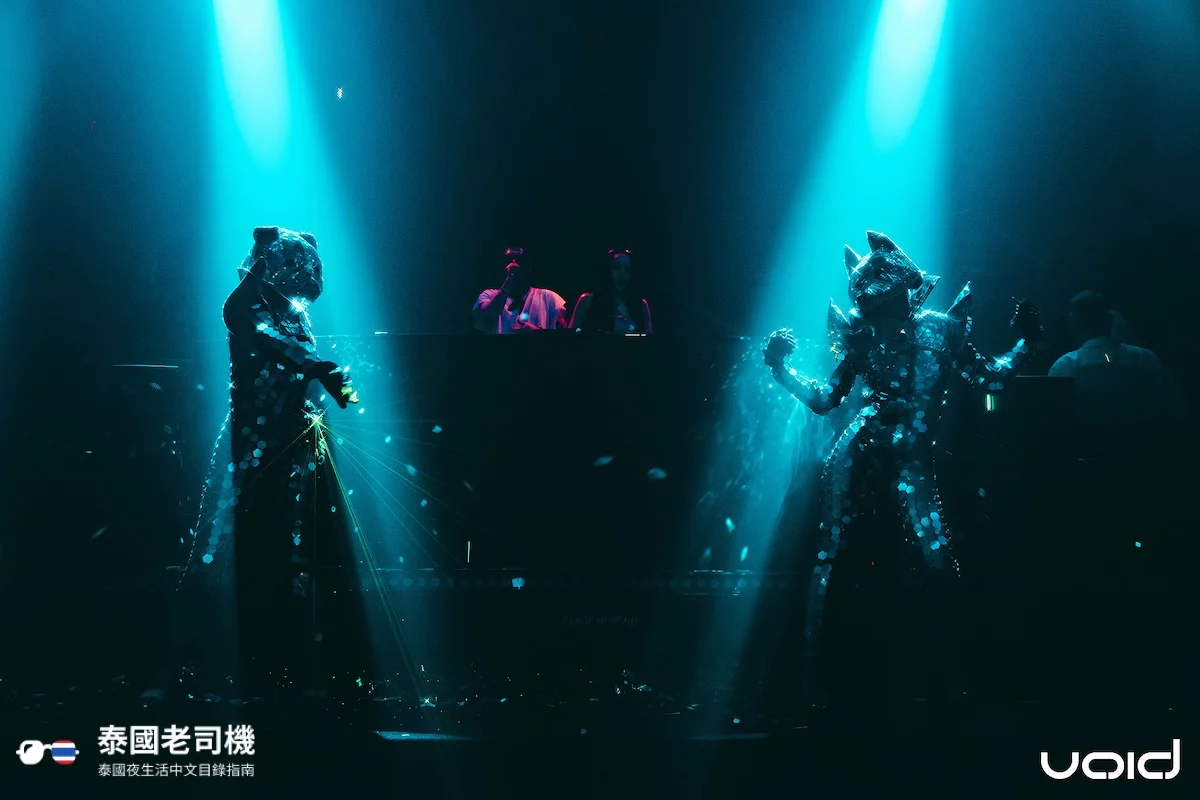 Void Club 有國際與本地 DJ 的現場演出,涵蓋 Deep House、Techno、Trance 等多種電子音樂類型。店裡的消費範圍中等偏上,洋酒套餐約 ฿5,000 起,可以在這裡查看菜單;入場費一般為 ฿500 (含飲料),價格視乎當晚是否有特別活動而不同。